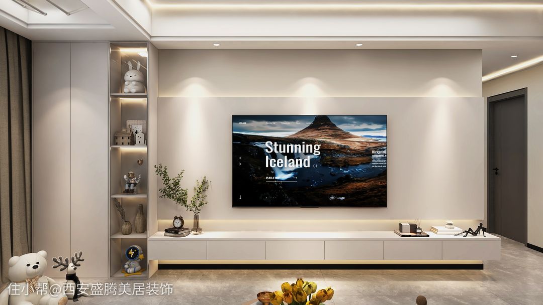 今天小編發(fā)的是2023年比較網(wǎng)紅款式的電視背景墻,懸空的電視柜,加上中部凸起的電視墻+上燈帶條,讓電視墻有著不一樣的簡(jiǎn)約感,貼近當(dāng)代人的優(yōu)雅風(fēng)哈。